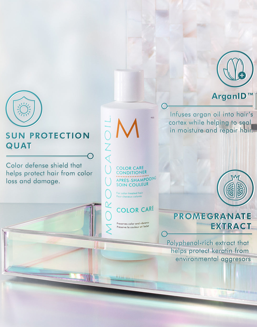 Extend the life of your color while improving hair’s integrity and boosting shine. This ultra-moisturizing conditioner softens and detangles to leave hair manageable and healthy-looking and is powered by proprietary technology to provide superior color retention. ArganID™ helps repair and seal the cuticle to lock in color, while an Environmental Protection Blend combines the benefits of pomegranate extract and a sun protection quat to help protect against color loss and damage caused by sunlight and environmental aggressors. 90% of users noticed healthy-looking shine in just one use.*